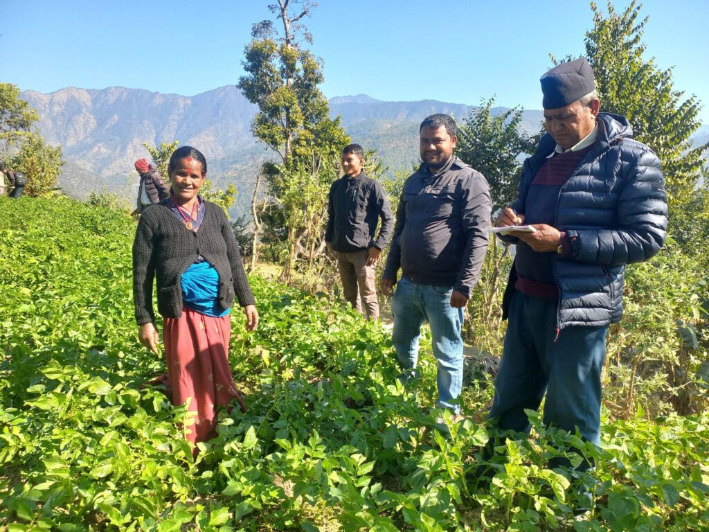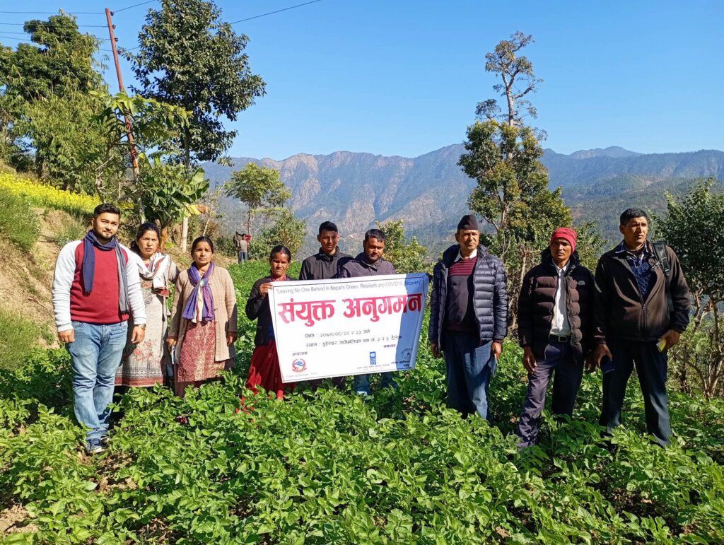 The joint monitoring and evaluation of project intervention of project “Leaving No One Behind in Nepal’s Green, Resilient and COVID 19 Recovery” implemented in partnership of Dungeshwor rural municipality, Dailekh, UNDP and Women Empowerment Action Forum Nepal has been conducted on 8th and 9th of December, 2022 by the Monitoring committee of the rural municipality, representatives of rural municipality, Technical staffs of rural municipality, Board members of the organization and project staffs. The project is being implemented in ward no. 2 & 3 of Dungeshwor rural municipality, Dailekh